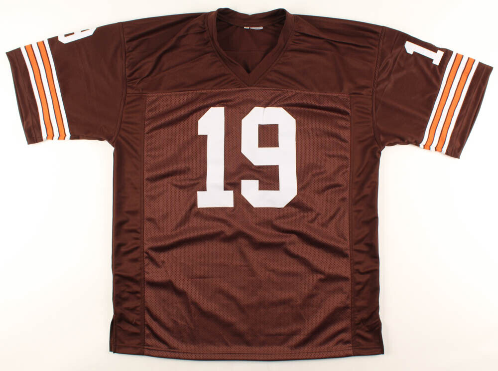 Custom on-field style jersey. Everything is sewn on, size XL. Has been hand-signed in black felt-tip pen by Bernie Kosar.