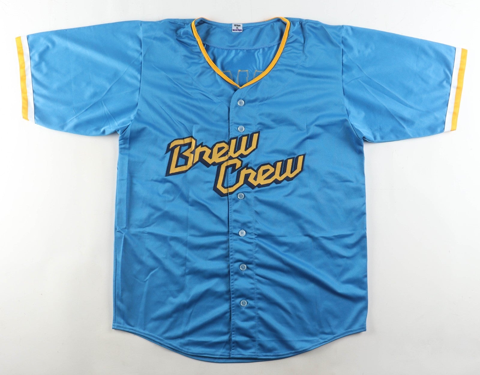 Custom on-field Brew Crew City Connect style jersey. Everything is sewn on, size XL. Hand-signed by Jacob Misiorowski.