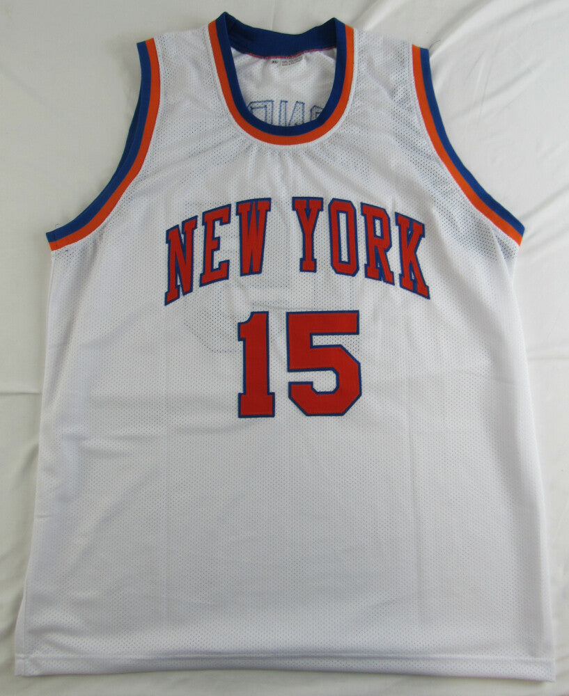 Custom on-court style jersey. Everything is sewn on, size XL. Hand-signed in black felt-tip pen by Earl Monroe (HOF).