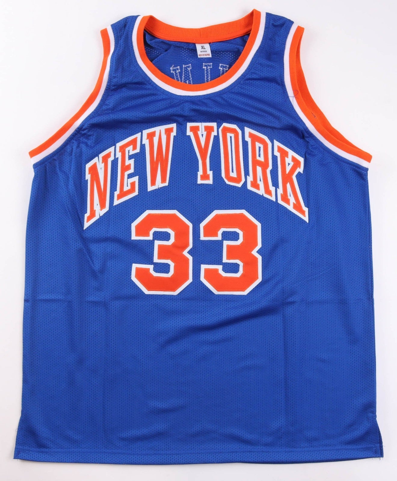 Custom on-court style jersey with everything pressed on, size adult XL. Hand-signed by Patrick Ewing (HOF).