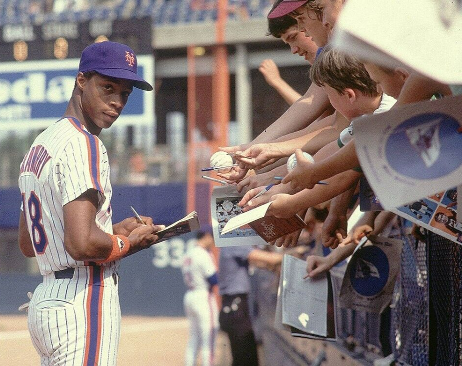Custom On-field style jersey. Everything is sewn on, size XL. Hand-signed by Darryl Strawberry.