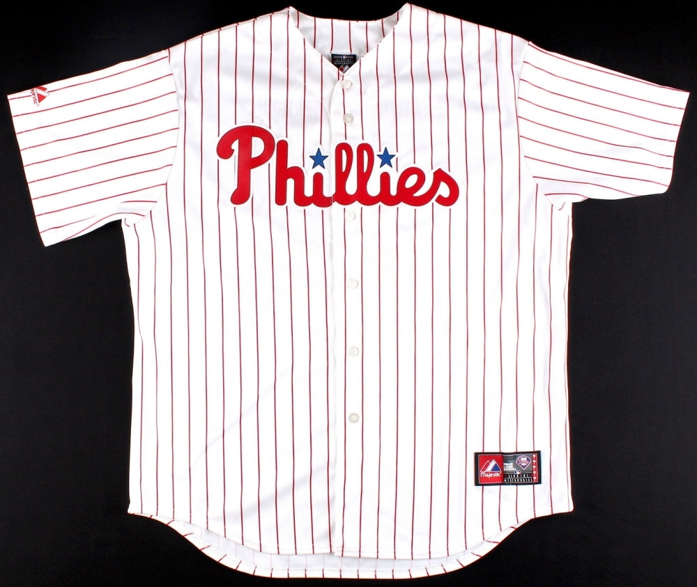 Majestic on-field style jersey. Everything sewn on, size XL. Hand-signed