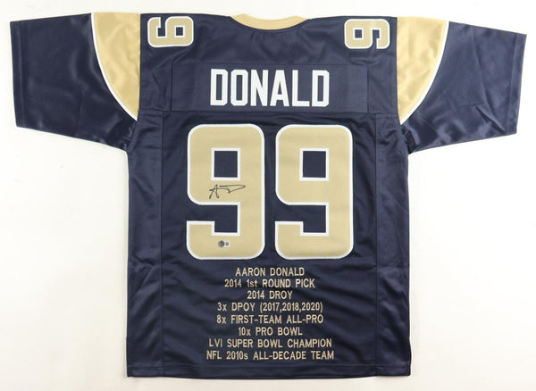 Aaron Donald Signed Los Angeles Rams Career Throwback Stat Jersey (Beckett) DE