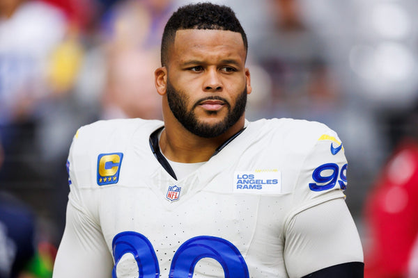 Custom on-field style jersey with everything sewn on, size XL. Has been hand-signed by Aaron Donald (Los Angeles Rams). The autograph includes an official Beckett Authentication Services serially numbered hologram...