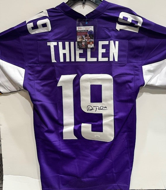 Custom on-field style jersey. Everything is sewn on, size XL. Has been hand-signed by Adam Thielen.