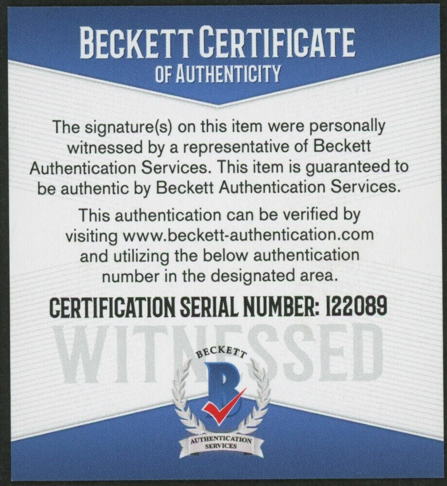 The lot / autograph(s) includes an official Beckett Authentication Services serially numbered hologram and matching COA for authenticity purposes. The signing of this item was witnessed by Beckett