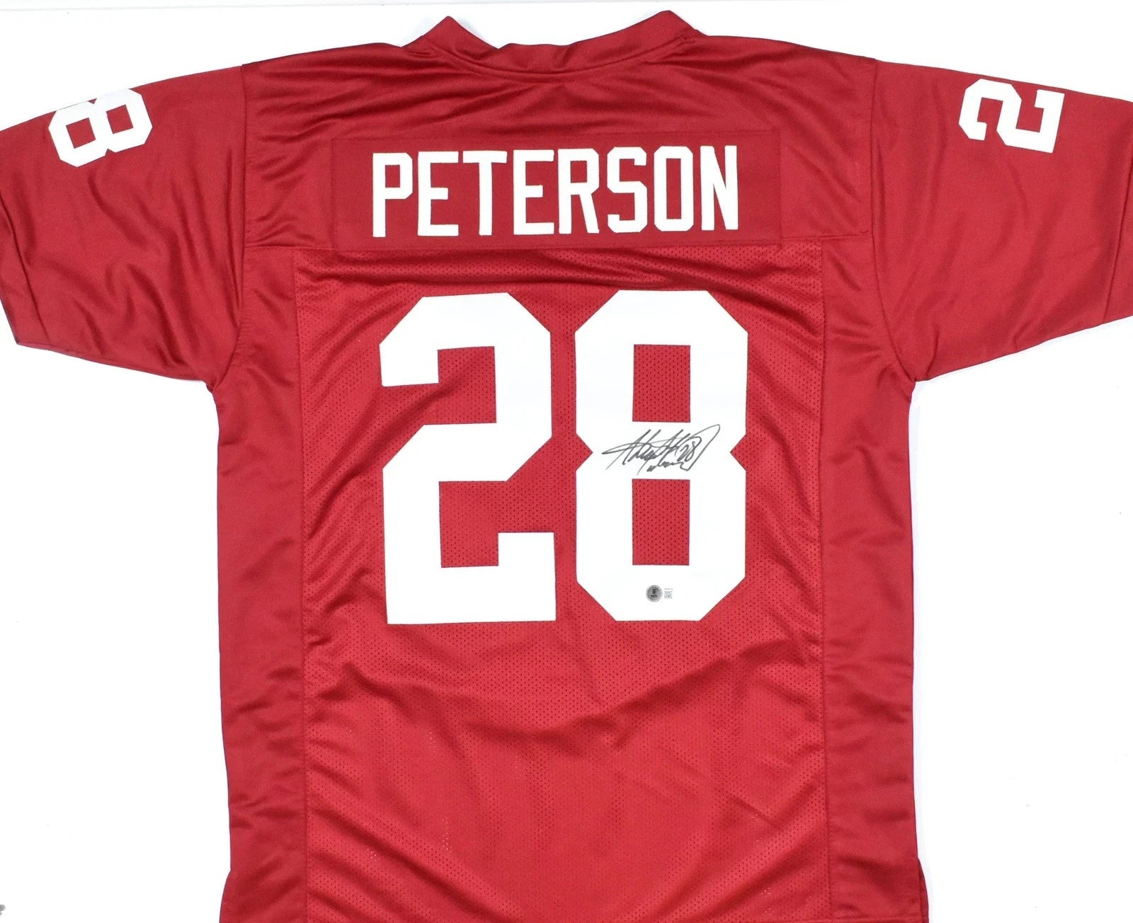 Custom on-field style jersey. Everything is sewn on, size XL. Has been hand-signed by Adrian Peterson.