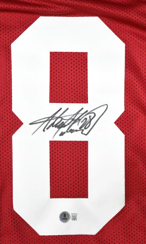 Custom on-field style jersey. Everything is sewn on, size XL. Has been hand-signed by Adrian Peterson. The autograph includes an official Beckett Authentication Services serially-numbered hologram and scannable QR Code...