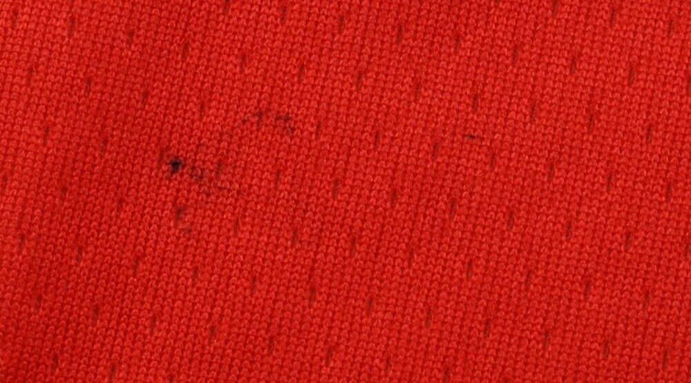 Champion jersey with everything sewn on, size; adult Large. Hand-signed by Alexandre Sarr. Please note, there is minor pen staining on the front of the jersey (see photo).