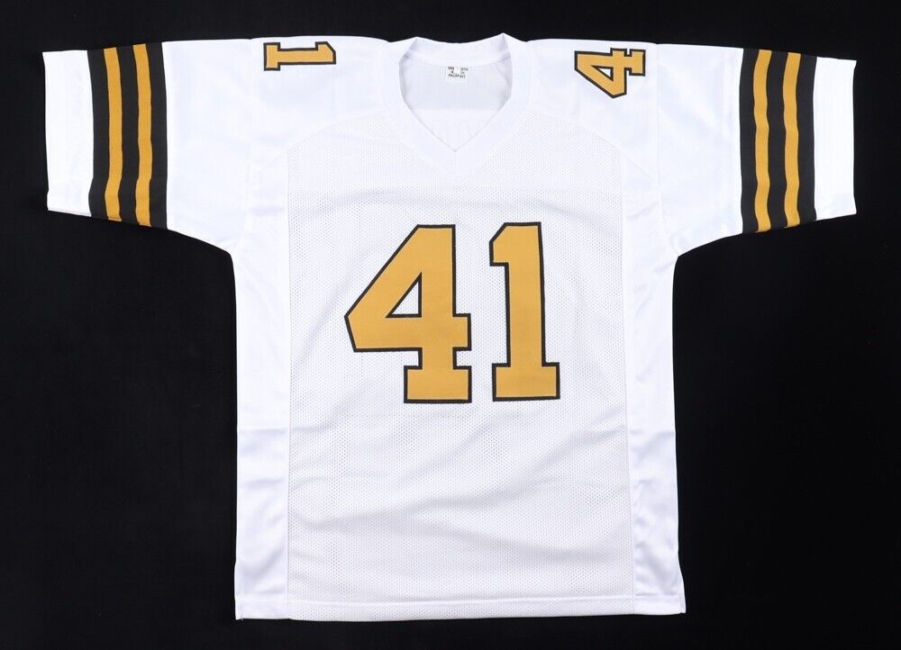Custom on-field style jersey. Everything sewn on, size XL. Hand-signed by Alvin Kamara.