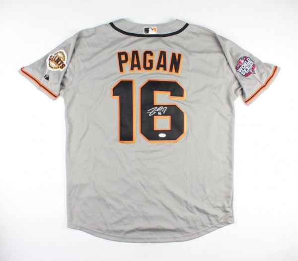 Custom On-field Majestic MLB style jersey. Everything sewn on, size XL. Hand-signed by Angel Pagan.The lot / autograph(s) includes an official James Spence Authentication (JSA) hologram and matching COA for...