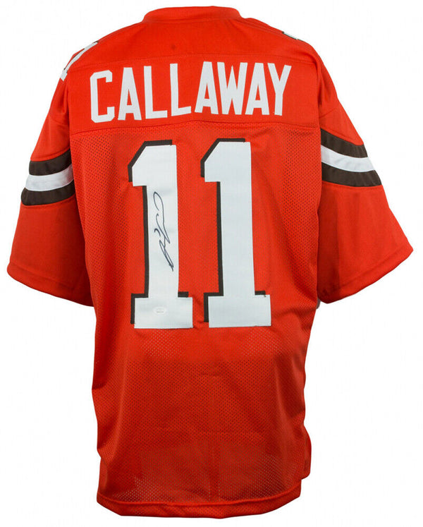 Custom on-field style jersey. Everything is sewn on, size XL. Hand-signed in black felt-tip pen by Antonio Callaway. The lot / autograph(s) includes an official James Spence Authentication (JSA) hologram...