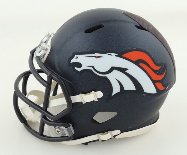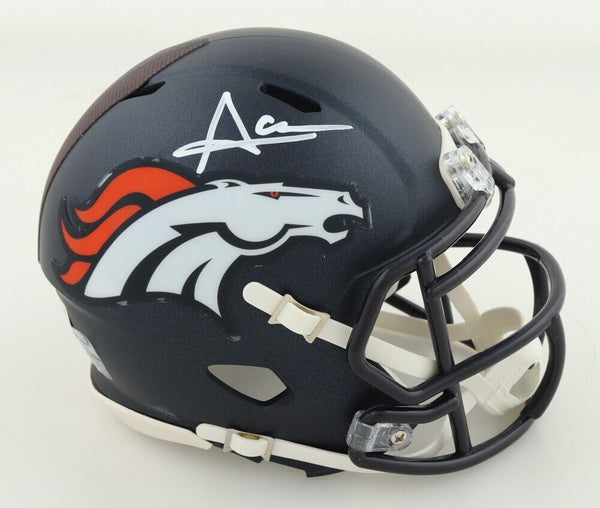 Riddell Denver Broncos Speed mini helmet. Hand-signed by Audric Estime. The autograph includes an official Beckett Authentication Services serially numbered hologram and QR code card for authenticity purposes. The signing...