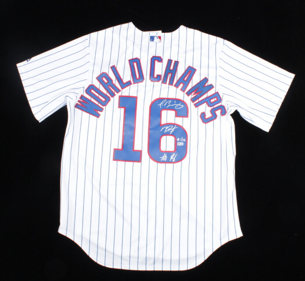 Baez, Rizzo, Bryant Signed 2016 Cubs World Series Champ Jersey LE #1/16 MLB Holo