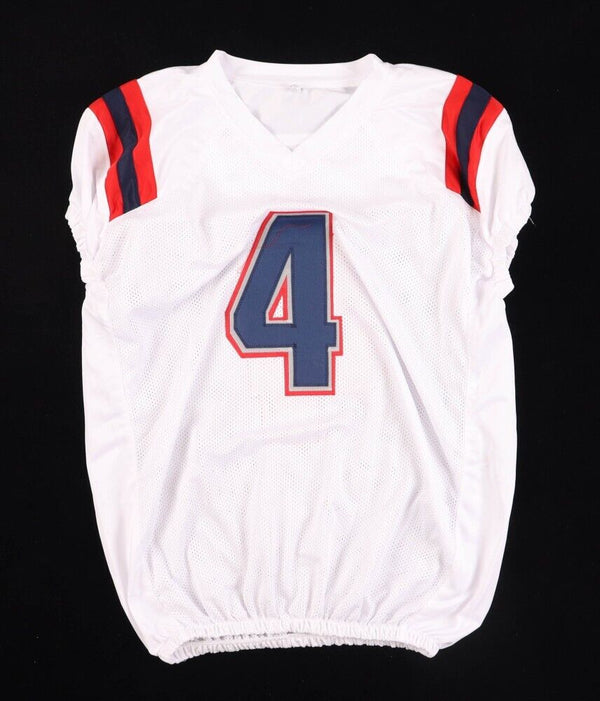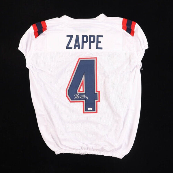 Custom on-field style jersey. Everything sewn on, size XL. Hand-signed by Bailey Zappe.The lot / autograph(s) includes an official James Spence Authentication (JSA) hologram and matching COA for authenticity purposes....