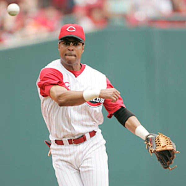 Custom on-field City Connect style jersey. Everything sewn on, size XL. Hand-signed by Barry Larkin (Cincinnati Reds). The autograph includes an official Beckett Authentication Services serially numbered hologram and QR...