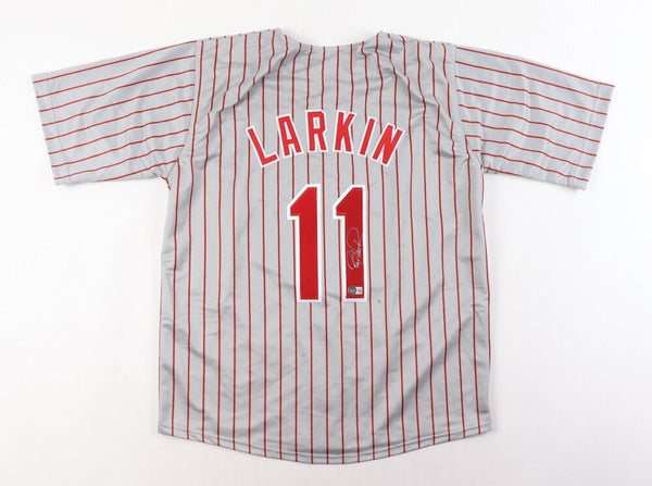 Barry Larkin Signed Cincinnati Reds jersey (Beckett) 12xAll Star S.S. / HOF 2012