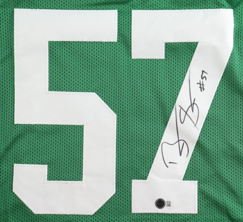 Custom on-field style jersey. Everything sewn on, size XL. Hand-signed by Bart Scott.