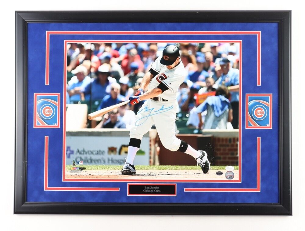 Custom frame measures 22" x 30" in size and features a photo that has been hand-signed by Ben Zobrist (Chicago Cubs).