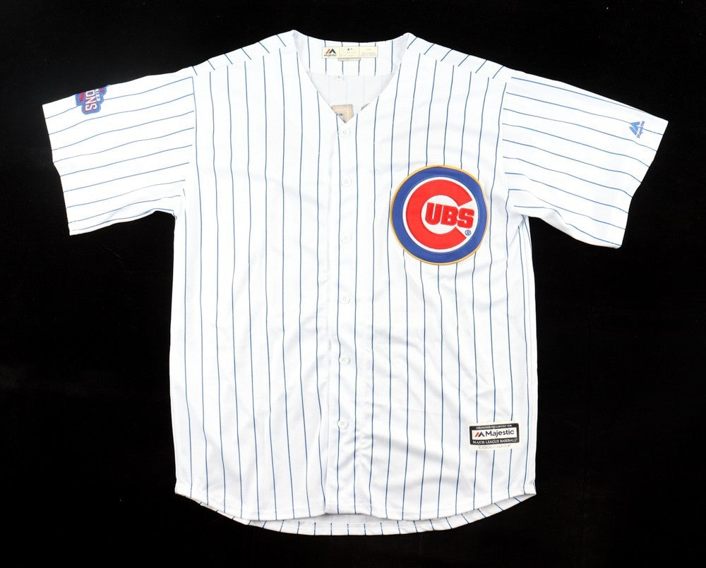 Majestic jersey with everything sewn on, size adult Large. Hand-signed by Ben Zobrist (Chicago Cubs).