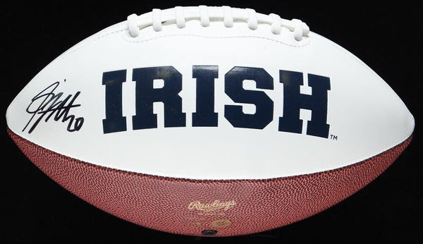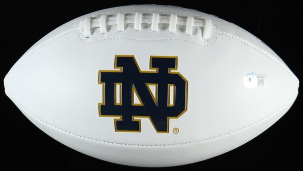 Notre Dame Fighting Irish logo football. Hand-signed by Benjamin Morrison. The autograph includes an official Beckett Authentication Services serially numbered hologram for authenticity purposes. The signing of this item was...