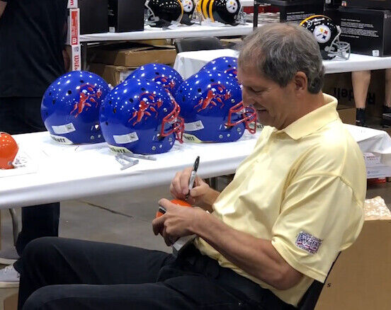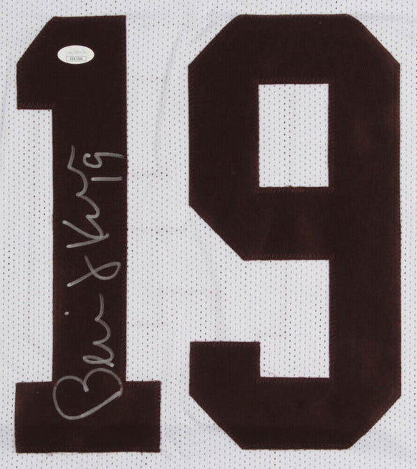 Custom on-field style jersey. Everything is sewn on, size XL. Hand-signed in silver paint pen by Bernie Kosar. The lot / autograph(s) includes an official James Spence Authentication (JSA) hologram...