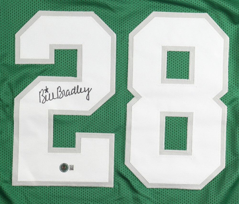 Custom on-field style jersey. Everything is sewn on, size XL. Hand-signed by Bill Bradley.
