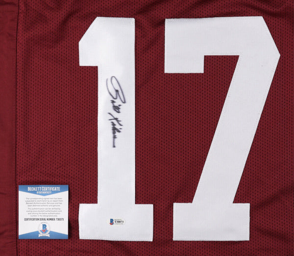 Custom on-field style jersey. Everything is sewn on, size XL. Hand-signed by Billy Kilmer. The lot / autograph(s) includes an official Beckett Authentication Services serially-numbered hologram and matching COA for...