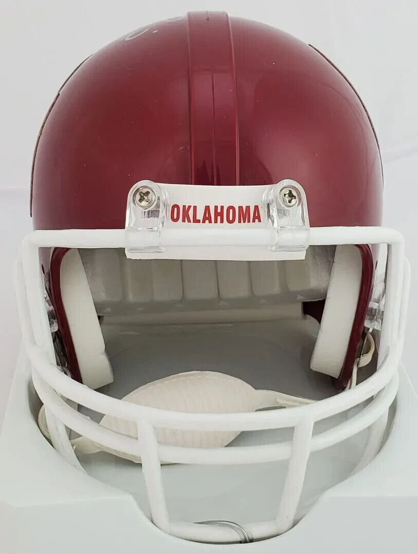 This autographed Riddell Throwback mini helmet has been personally hand-signed by Billy Sims of the Oklahoma Sooners. Sims added the inscription “78 Heisman” along with his signature.