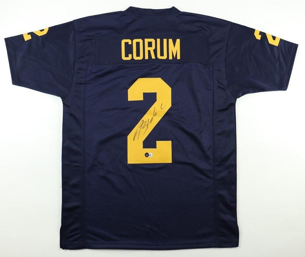 Custom on-field style jersey. Everything sewn on, size XL. Hand-signed by Blake Corum.The lot / autograph(s) includes an official James Spence Authentication (JSA) hologram for authenticity purposes. The signing of...
