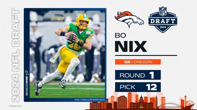 Bo Nix Signed Denver Broncos Jersey (Beckett) 2024 1st Round Pick / #12 Overall