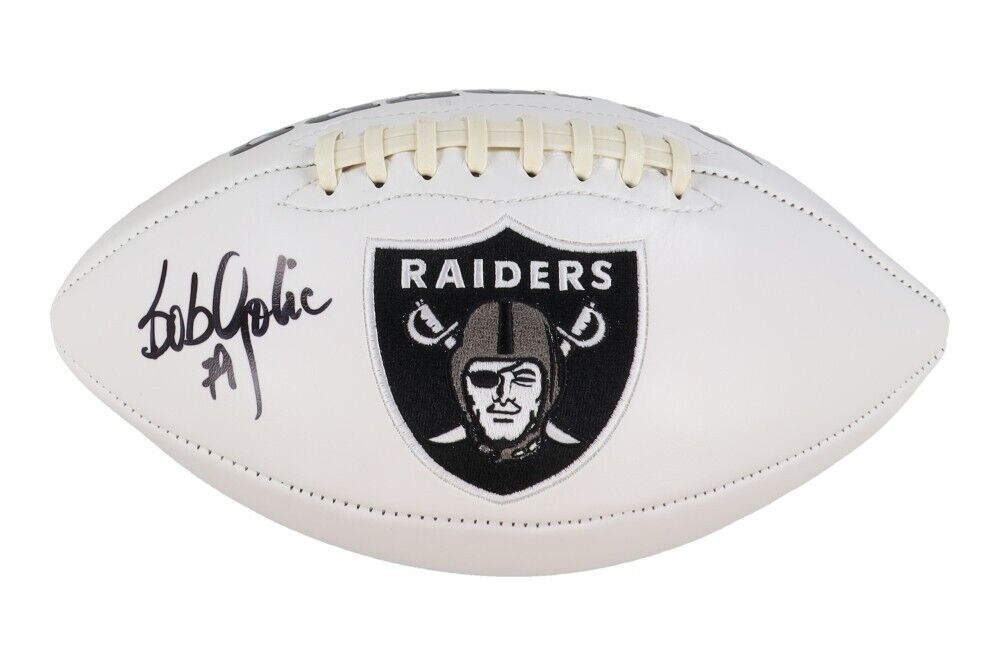 Los Angeles Raiders logo football has been hand-signed by Bob Golic.
