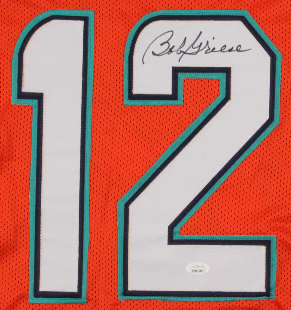 Custom on-field style jersey. Everything is sewn on, size XL. Hand-signed in black felt-tip pen by Bob Griese (HOF).