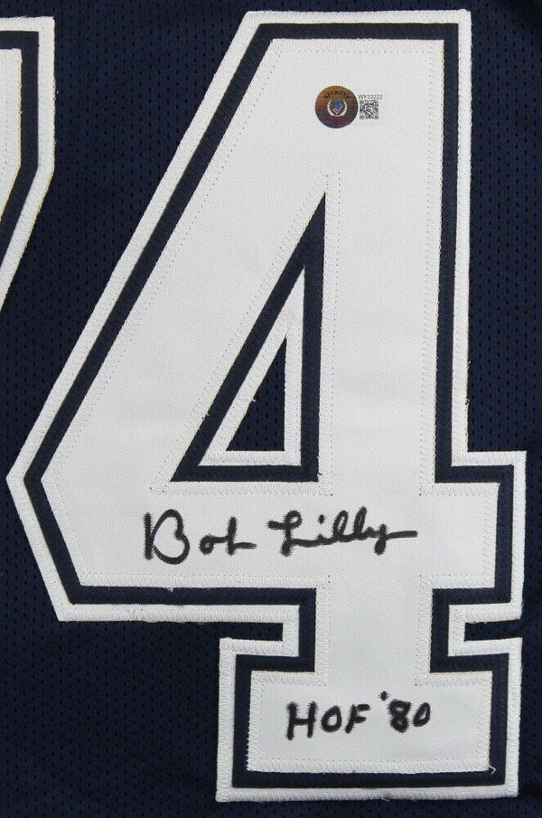 Bob Lilly Signed Dallas Cowboys Dark Blue Jersey Inscribed "HOF 80" (Beckett)