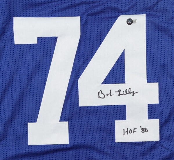 Custom on-field style jersey. Everything sewn on, size XL. Hand-signed by Bob Lilly (HOF). The lot / autograph(s) includes an official Beckett Authentication Services serially-numbered hologram for authenticity purposes. Authentication: Beckett...
