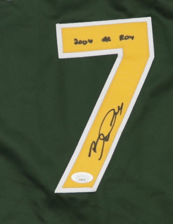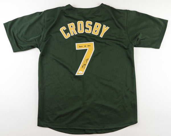 Custom jersey. Everything sewn on, size XL. Hand-signed and inscribed by Bobby Crosby. The lot / autograph(s) includes an official James Spence Authentication (JSA) hologram and matching COA for authenticity...