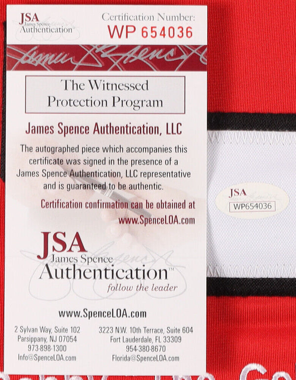 Custom on-ice style jersey. Everything is sewn on, size XL. Jersey has been hand-signed in black felt-tip pen by Bobby Hull (HOF). The lot / autograph(s) includes an official James...