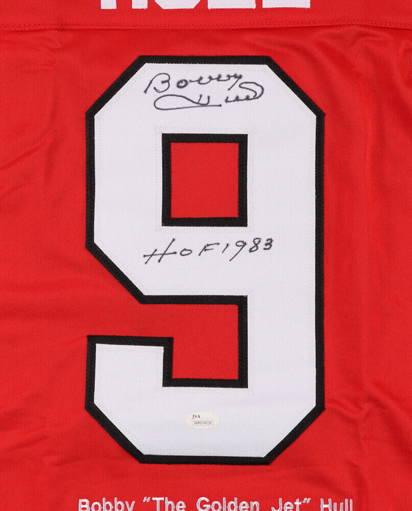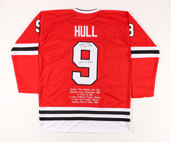 Bobby Hull SIgned Blackhawk Highlight Stat Jersey Inscribed "HOF 1983" (JSA COA)