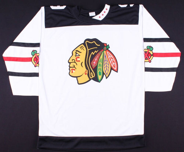 Custom on-ice style jersey. Everything sewn on, size XL. Hand-signed and inscribed in silver paint pen by Bobby Hull (Blackhawks HOF). The autograph includes an official James Spence Authentication (JSA)...