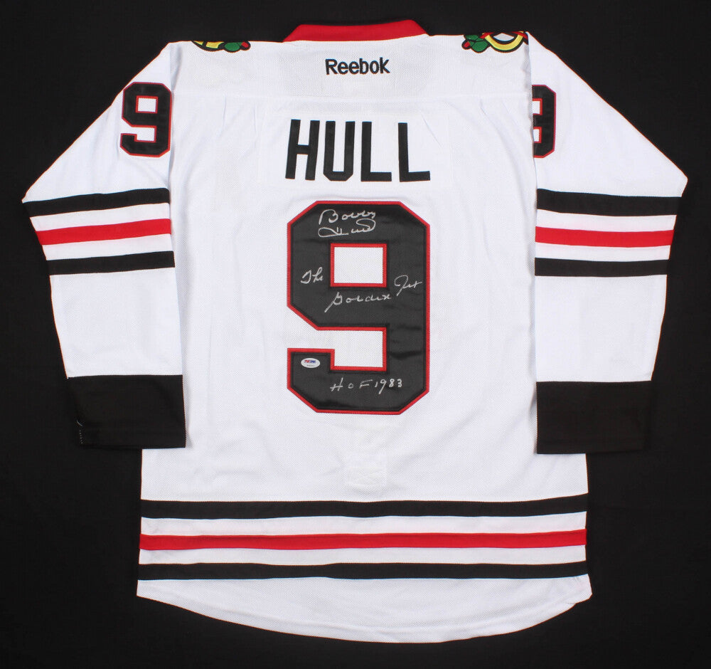 Bobby Hull Signed Blackhawks Reebok Jersey "The Golden Jet" & "HOF 83" (PSA COA)