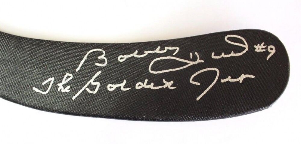 Full-Size hockey stick has been hand-signed in silver paint pen by Bobby Hull (Blackhawks HOF).