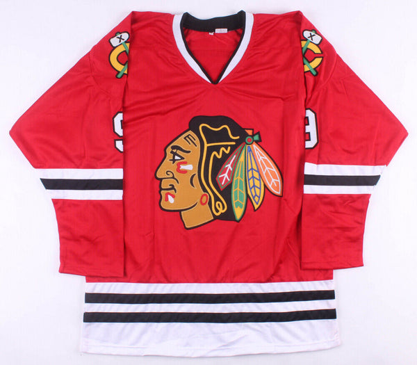 Custom on-ice style jersey. Everything sewn on, size XL. Hand-signed in black felt-tip pen by Bobby Hull (HOF). The lot / autograph(s) includes an official Beckett Authentication Services serially numbered...