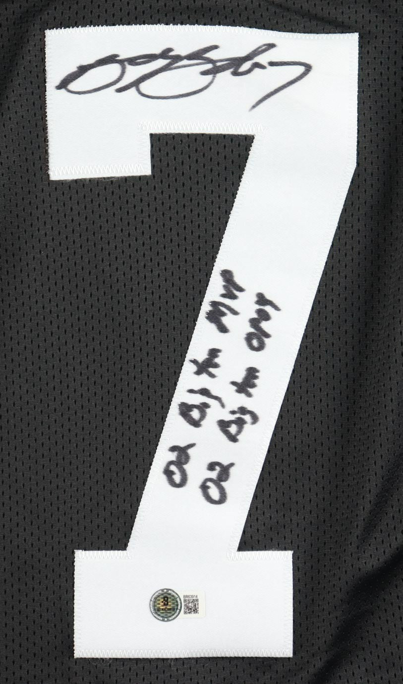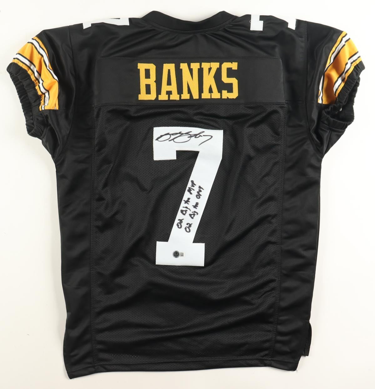 Custom on-field style jersey. Everything is sewn on, size XL. Hand-signed and twice inscribed by Brad Banks.
