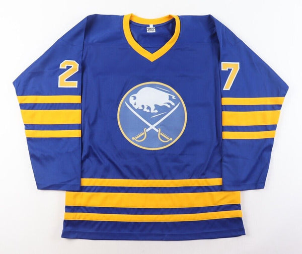 Custom on-ice style jersey. Everything sewn on, size XL. Hand-signed by Brad May. Brad scored one of the most memorable goals in Sabres History in the Stanley Cup Playoffs. The goal is...
