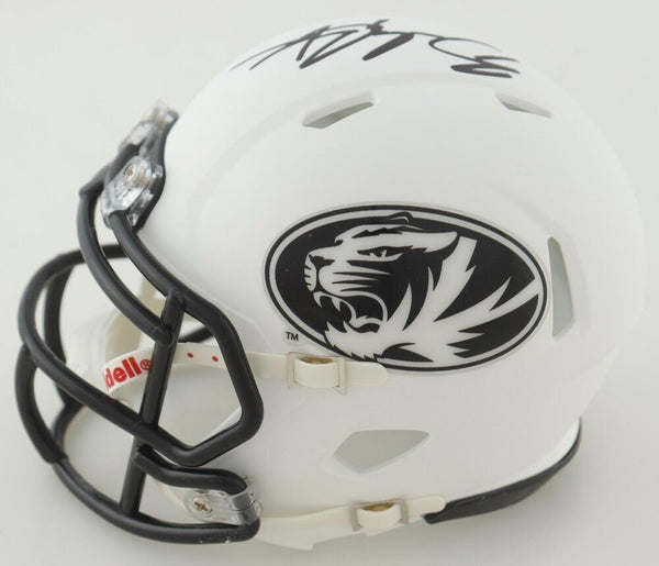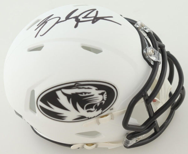 Riddell Missouri Tigers speed mini helmet has been hand-signed by Brady Cook. The autograph includes an official Beckett Authentication Services serially numbered hologram for authenticity purposes. The signing of this...