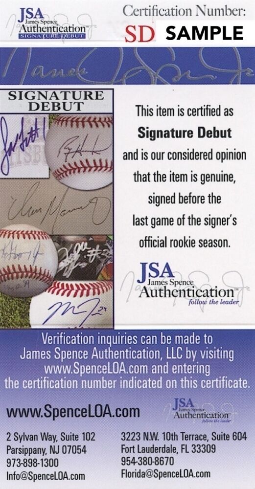 Authentication: JSA "Signature Debut" COA