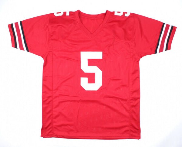 Custom on-field style jersey. Everything sewn on, size XL. Has been hand-signed by Braxton Miller. The lot / autograph(s) includes an official James Spence Authentication (JSA) hologram and matching COA...