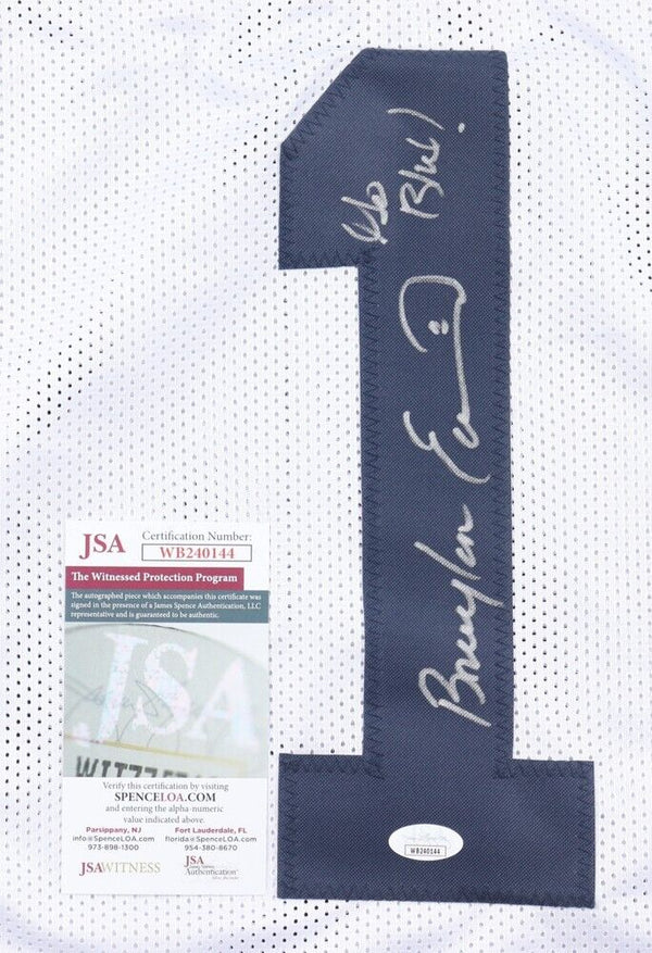 Custom on-field style jersey. Everything sewn on, size XL. Hand-signed by Braylon Edwards. The lot / autograph(s) includes an official James Spence Authentication (JSA) hologram and matching COA for authenticity...