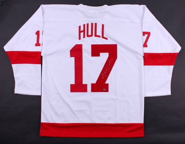 Brett Hull Signed Red Wings Jersey (Schwartz) 741 NHL Goals 4th Highest NHL ttl.
