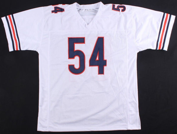 Custom on-field style jersey. Everything sewn on, size XL. Hand-signed in silver paint pen by Brian Urlacher. The autograph includes an official James Spence Hologram and matching COA for authenticity...